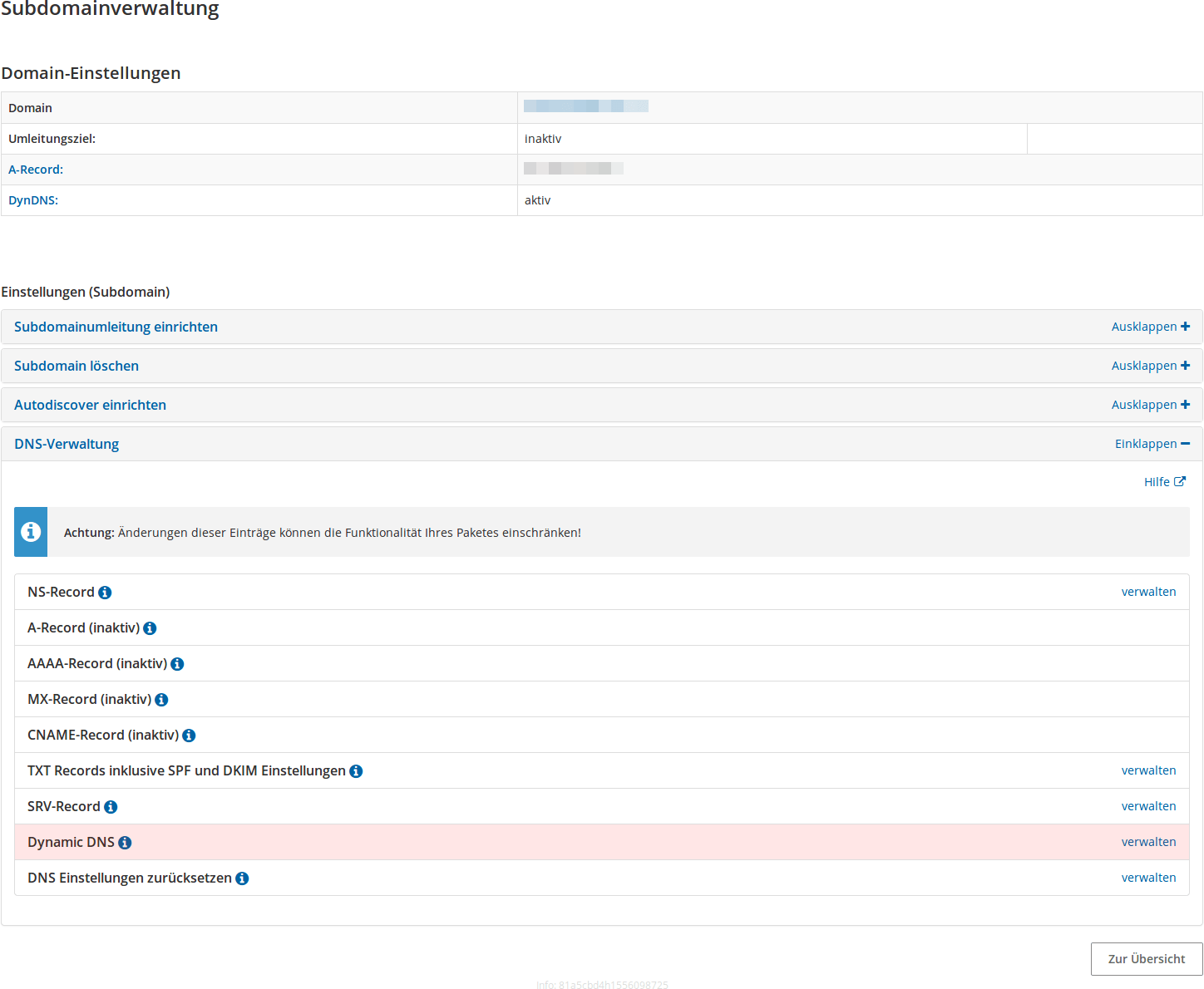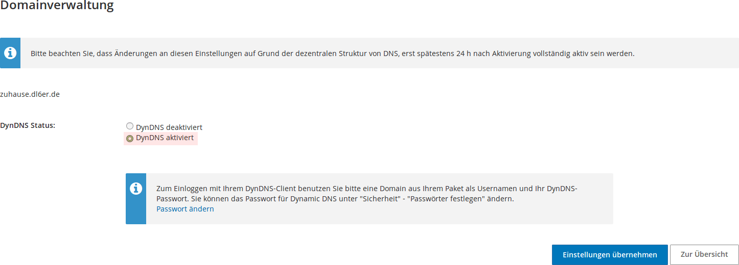 In the following, we give an example of how to set up ddclient using the German Internet hosting provider Strato. First, you need to create a subdomain. Then you need to enable DnyDNS for this domain: